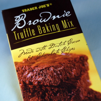 Like many of their acolytes, I have long sung the praises of Trader Joe’s. It was one of the first markets to make food shopping fun with their shipwreck style and clever & educational marketing. A few years ago, I discovered Trader Joe’s Brownie Truffle Baking Mix. And let me say, these are the best damn brownies that can be had in a mix. The brownies are deep, rich and chock full of little chocolate bits, giving me both crunchy and smooth textures in each bite. If I want to get really fancy, I’ll shake a little confectioner’s sugar through a tea strainer to create a snowy dusting on top.
