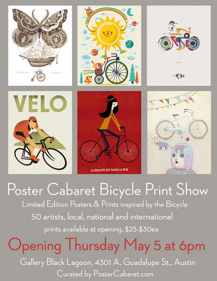 One thing they’ve gotten particularly famous for are their bicycle posters. Indeed, they now have a gallery show in Austin of some of their best velo illustrations from a variety of artists and styles as part of May’s celebration of National Bike Month.*The prices are reasonable and you can contact the artists for more of their work or special commissions.