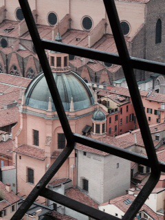 We have so far enjoyed green lasagne bolognese, prosciutto and for lunch today homemade tagliatelle bolognese and tortelloni with butter and sage. How do we consume so much, you ask? Well we’ve already walked 6 miles today through piazzas and lost passages that including climbing a medieval tower of 46 staircases or maybe 47 but I’m not going back up to recount. The views of the city, its medieval, gothic and Romanesque churches and countless red roofs were worth the climb.