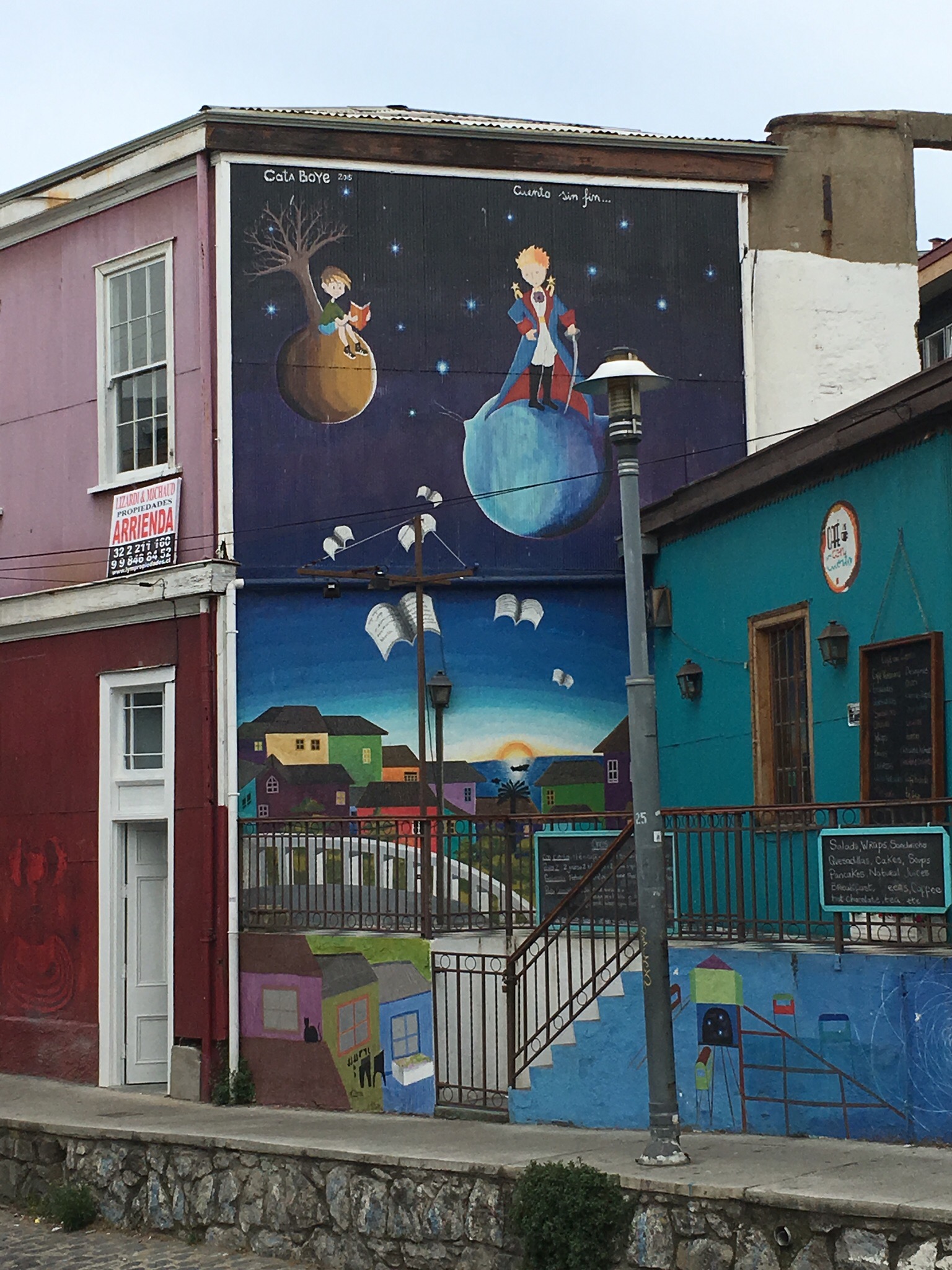 We spent hours daily just wandering the streets and exploring. The big difference between Santiago and Valparaiso is the geography. Santiago is a flat city like L.A., Santiago a coastal, hilly city like SF. But SF on steroids. We have been huffing and puffing our way through funky Valparaiso. When google says a destination is 30 minutes away that usually means we get there in 20. In Valpo (as the locals say) a 30 minute walk breathlessly took us 60 minutes…cuz I had to constantly catch my breath…and I thought i was in good shape! (Lisa and Nina could probably climb it in 30 or less!)