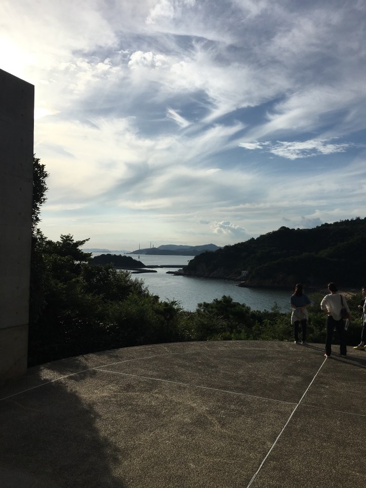We arrived late afternoon at Benesse after hoofing it over at top speed. We saw the iconic Kusama pumpkin at the tip of the beach and a grassy field of Nikki de St. Phalle fantastic animals. We hustled sweatily uphill to visit the first of 3 museums: Benesse itself. We are informed that no photos are allowed. Inside are several massive rooms where the small collection gives each work spacious breathing room to speak. There’s a Hockney, a Nevelson and other works both indoors and out as you viscerally experience Tadeo Ando’s remarkable minimalist architecture. You step outside small doors to curated views of the sea beyond which were mesmerizing in the glittering late day light.