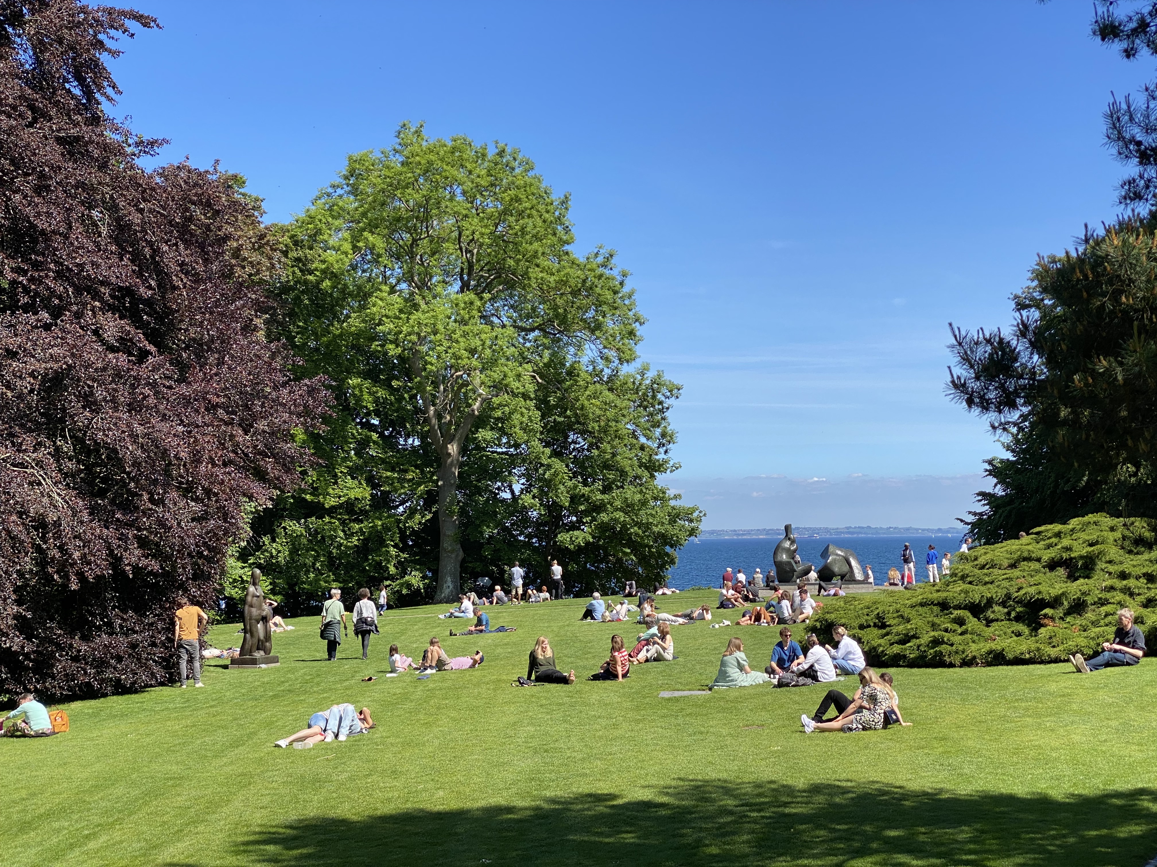 The lush natural landscapes cultivated gardens attracted many visitors to just stay outdoors to enjoy the sunny day, outdoor sculptures, ocean vistas and picnic and cafe fare. It was a paean to George Seurat’s iconic painting “Sunday in the Park”!