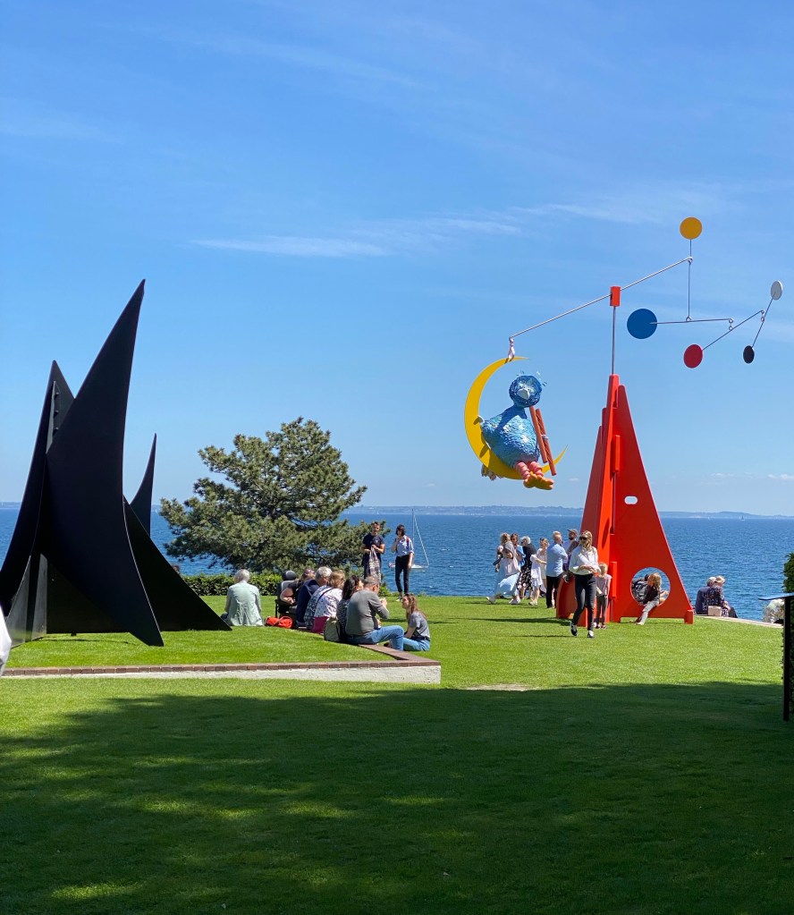 We were equally delighted to be there. Multiple buildings are woven across the lush property housing contemporary Danish Artists in their above and below ground galleries. We even saw a retrospective exhibit of the provocative American Photographer Diane Arbus’s black and white works. We also discovered Danish artist Sonia Delaunay’s joyfully colorful avant-garde paintings.