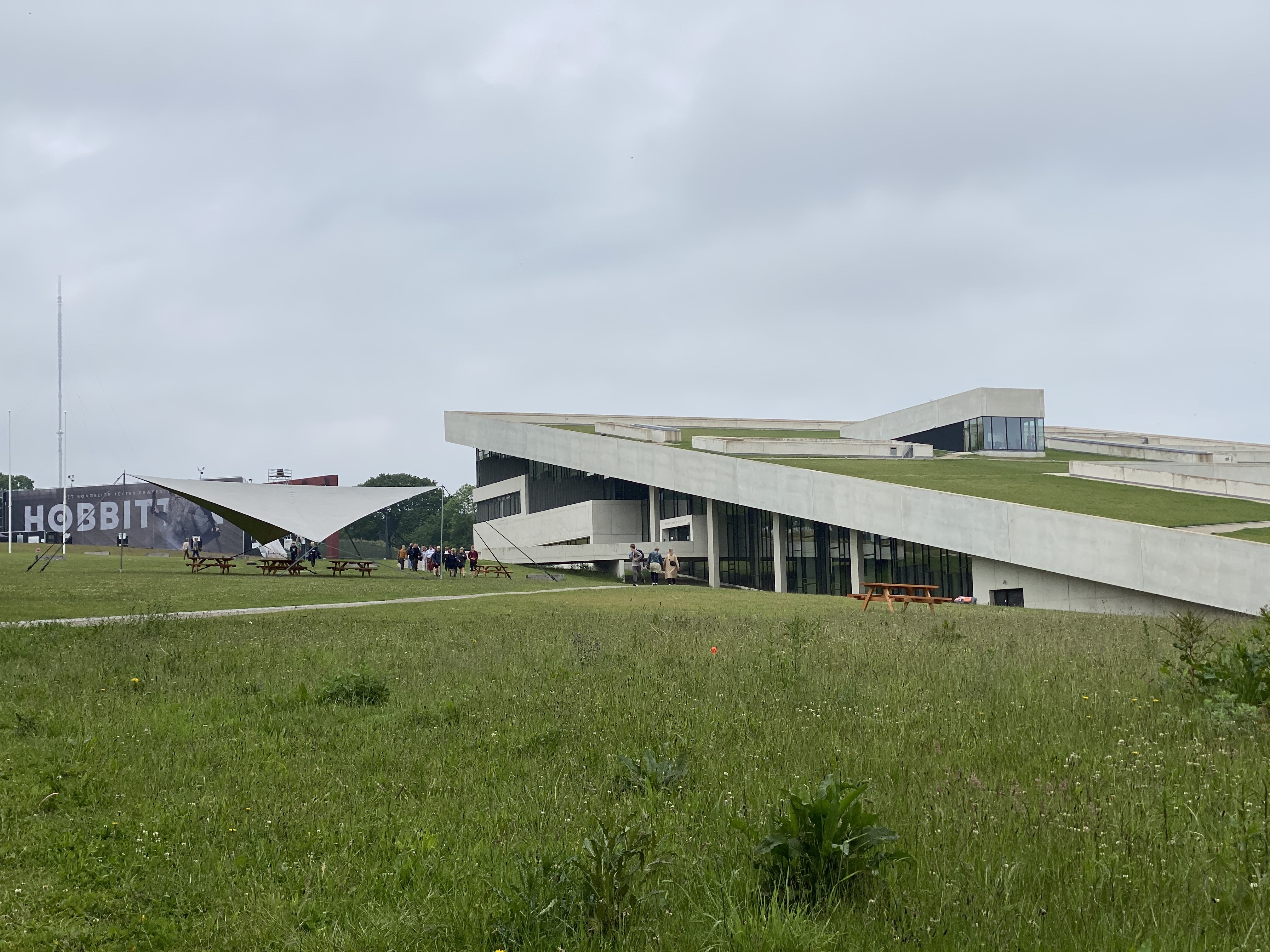 Moesgaard Museum built into the hillside — a pastoral setting outside town.