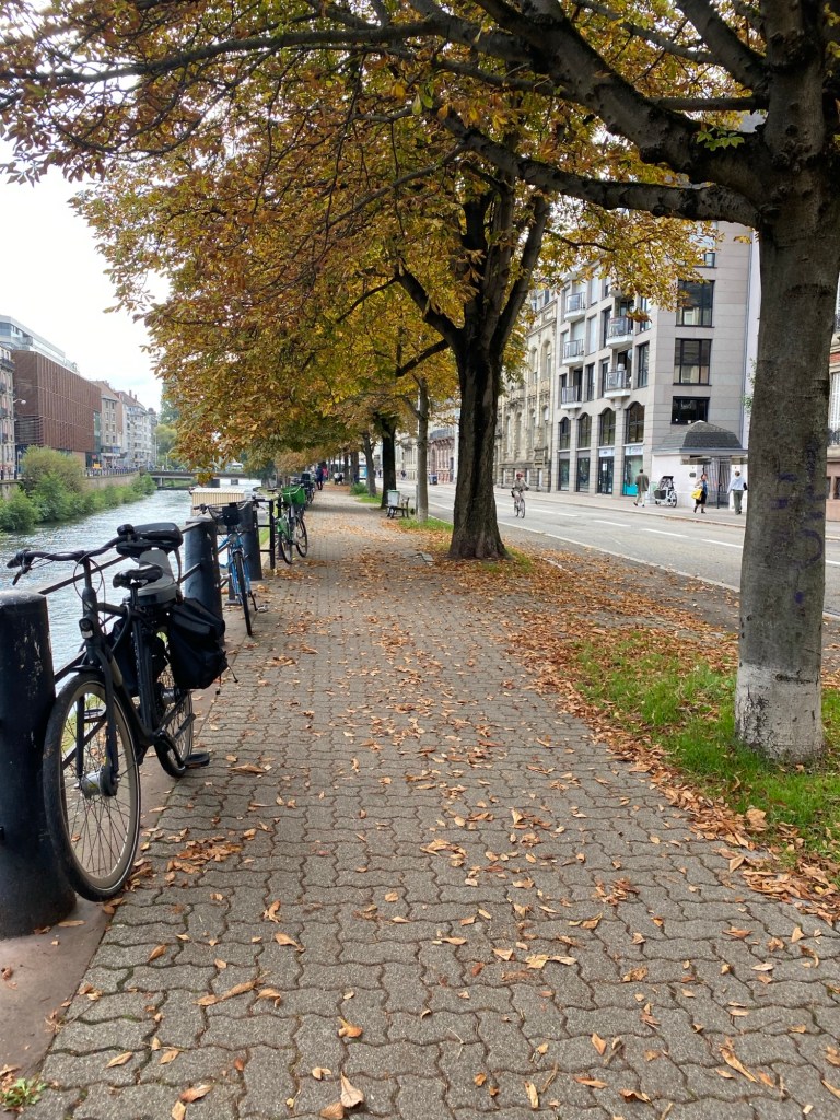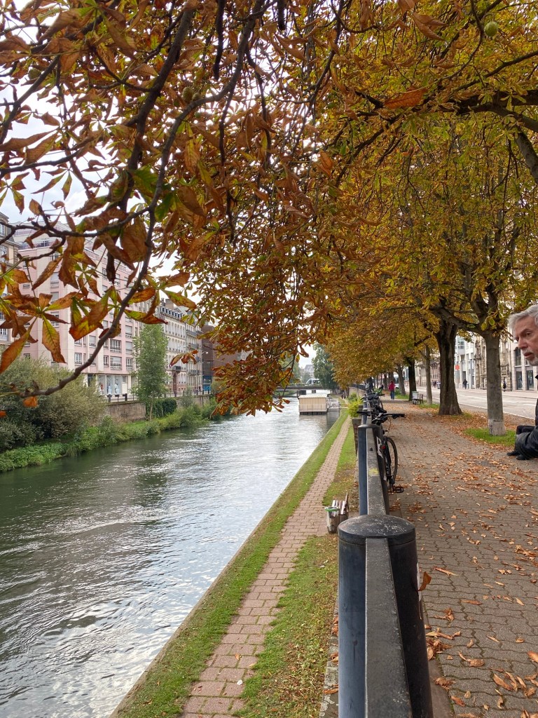 Strasbourg is a lovely city with miles of canals, enveloped by flowers and foliage. The leaves were starting to turn. We quickly got the lay of the land, finding our perfect breakfast boulangerie where we became a two day ‘regular’.