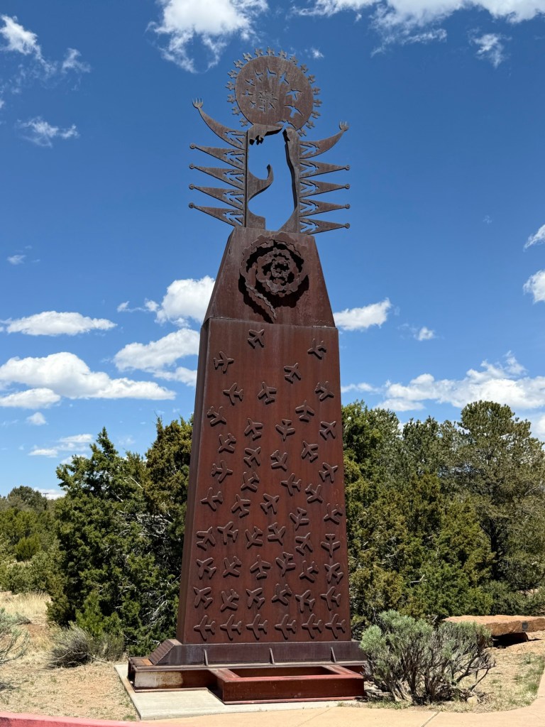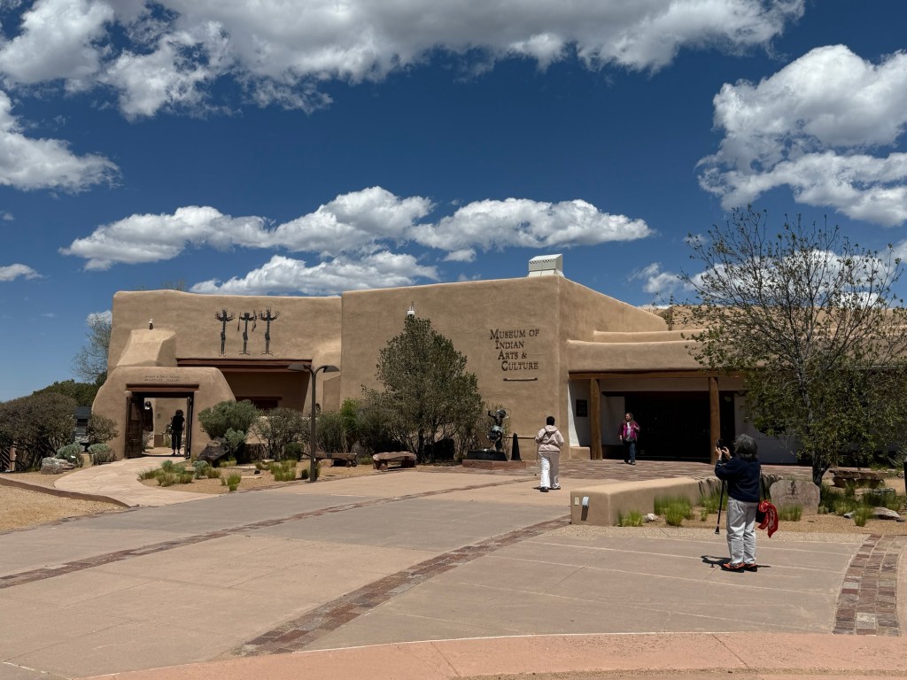 We started our museum_hopping at the New Mexico History Museum.  It was a sometimes sobering look at American History. We learned about our policies of Manifest destiny; our treatment of the indigenous peoples who preceded us; and the immigrants who built the west, especially the railroad workers.  We kept thinking that some things don’t change as we watch history repeating itself.