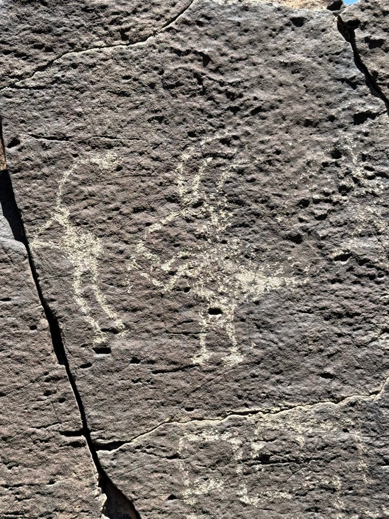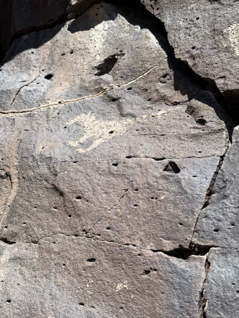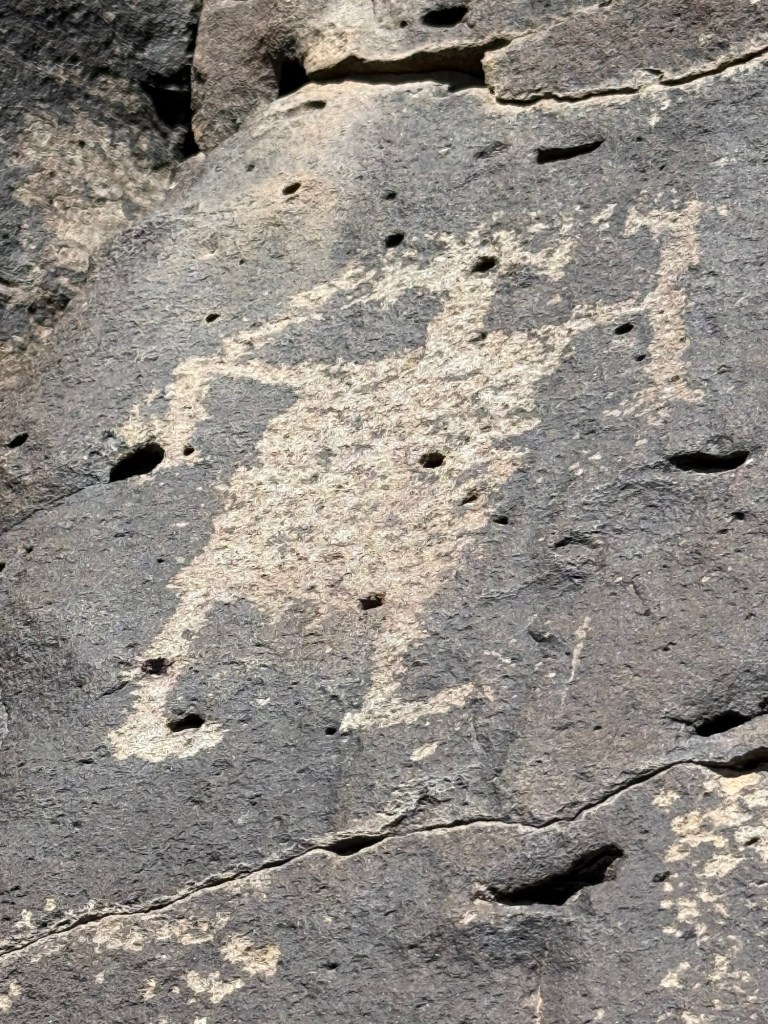It was astonishing! We were up close and personal with drawings by Puebloan peoples who lived there from the 13th-17th centuries. There were the classic, hump-backed flute players, birds, horses and mysterious circles. I couldn’t believe we were so close to these ancient images and they were breathtaking in their simplicity, longevity and proximity. We took loads of photos.