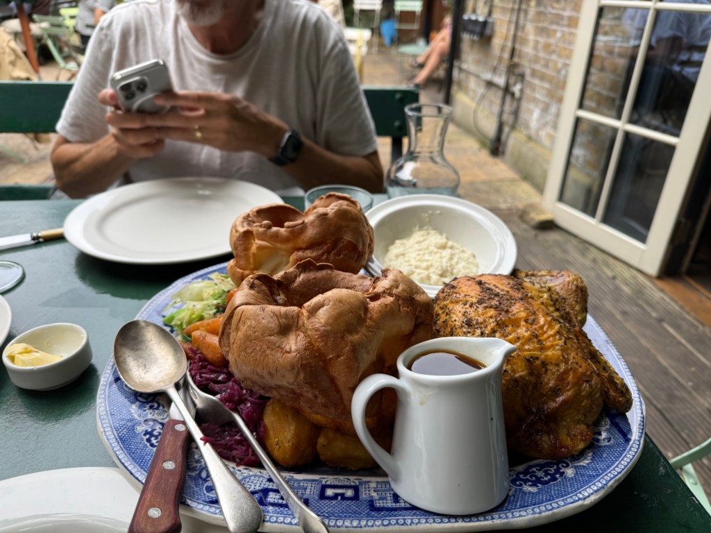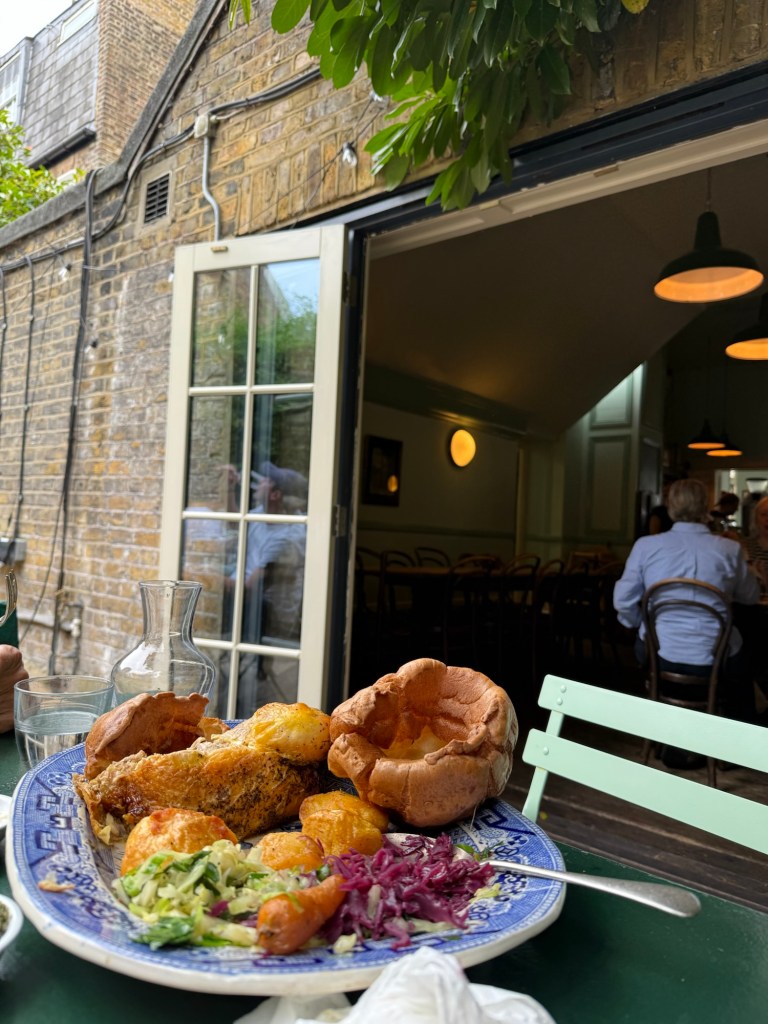 We shared a whole roast chicken with gravy, veg, Yorkshire pudding and the best bread with creamy butter. It was a feast and we had plenty of takeaway after.