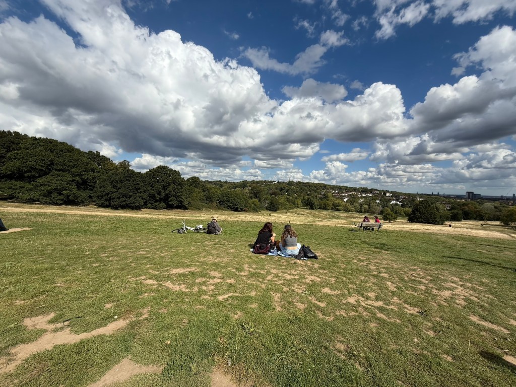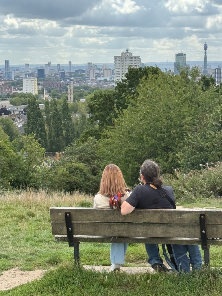 Tuesday, they predicted rain soon… but not this morning. So, we hopped a local train to Hampstead Heath, a favorite park of past visits.  The city views are spectacular and the wide open heath welcomed us with open arms and breathtaking cloud formations.